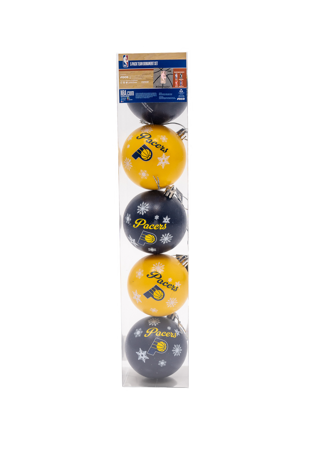 Indiana Pacers 5 Pack Ball Ornament Set in Navy by FOCO