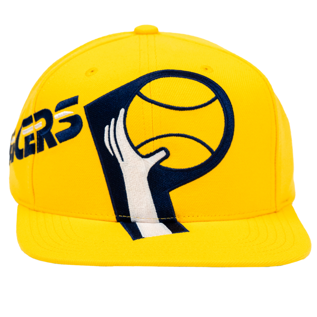 Adult Indiana Pacers Big Time Snapback Hat in Gold by Mitchell and Ness