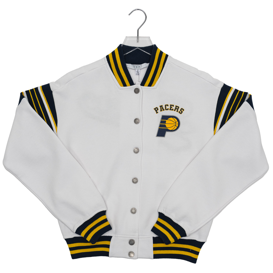 Women's Indiana Pacers Snap Front Fleece Jacket in White by WEAR by EA